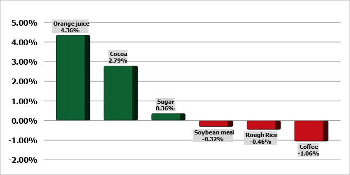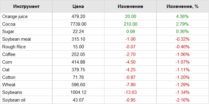 Цены на сахар выросли в пятницу благодаря снижению производства сахара в Бразилии. Unica сообщила в пятницу, что производство сахара в бразильском регионе Центр-Юг во второй половине сентября упало на -16,2% г/г до 2,829 млн тонн. Однако рост производства сахара был ограниченным, так как производство сахара в регионе Центр-Юг в 2024/25 г. по итогам сентября выросло на +1,5% до 33,154 млн тонн. Цены на сахар снизились с лучших уровней в пятницу после того, как бразильский реал упал до 1-месячного минимума по отношению к доллару, что стимулировало экспортные продажи со стороны бразильских производителей сахара. В среду цены на сахар снизились до 3-недельных минимумов, так как прогнозируемые дожди в Бразилии ослабили опасения по поводу засухи.