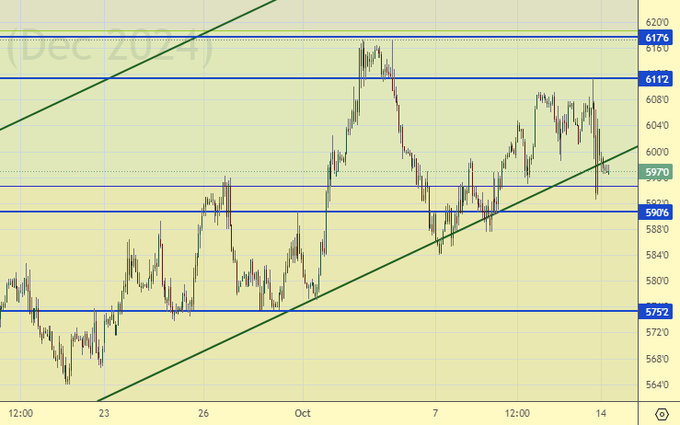 Видим хулиганство. Попытка пробиться вниз едва не снесла стоп на 592.0. Также, видна борьба на фоне возросшей волатильности, которая не обязательно должна привести к падению. Если все-таки это произойдет, и цены пойдут вниз, и 650.0 мы так и не увидим в рамках текущего роста, то страшно даже писать, мы можем снова попробовать пройти к 500.0. Этот ход вряд ли будет отражать текущую напряженность в мире, зато он будет отражать текущий отличный урожай.