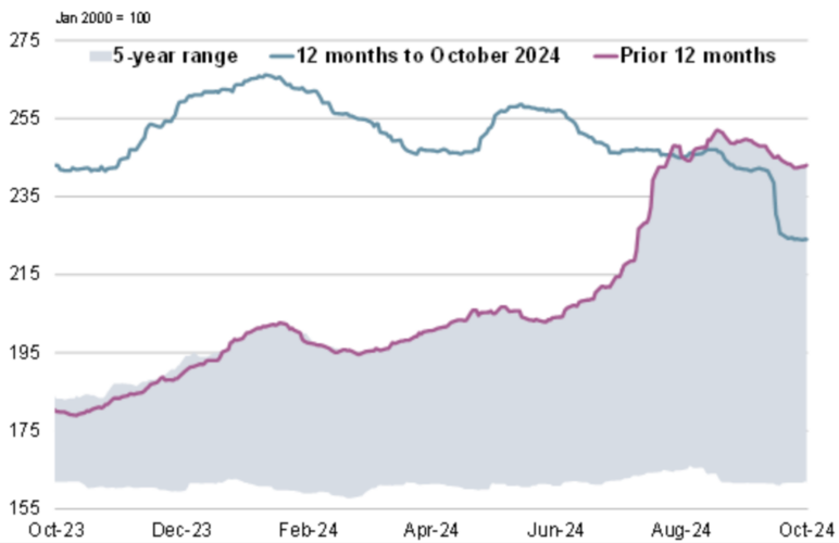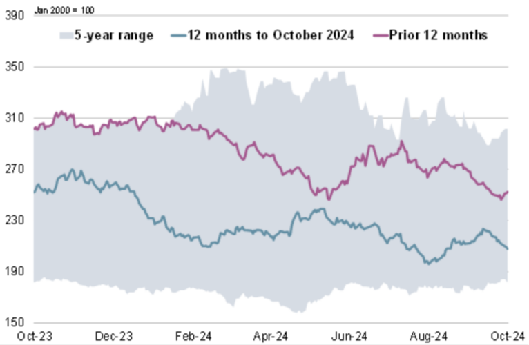 С учетом незначительного повышения ожиданий в отношении южноамериканских производителей, мировое производство сои в 2024/25 гг. прогнозируется на 2 млн т выше, чем ранее, на новом пике, с ростом на 7% по сравнению с предыдущим годом. Вместе с более высокими показателями переходящих запасов, прогнозируемые совокупные запасы на конец сезона увеличиваются на 4 млн т м/м. В связи с улучшением прогнозов для покупателей в Африке и Азии, объем торговли прогнозируется на 1 млн т выше, чем в сентябре (+1% г/г).