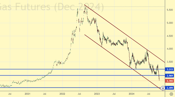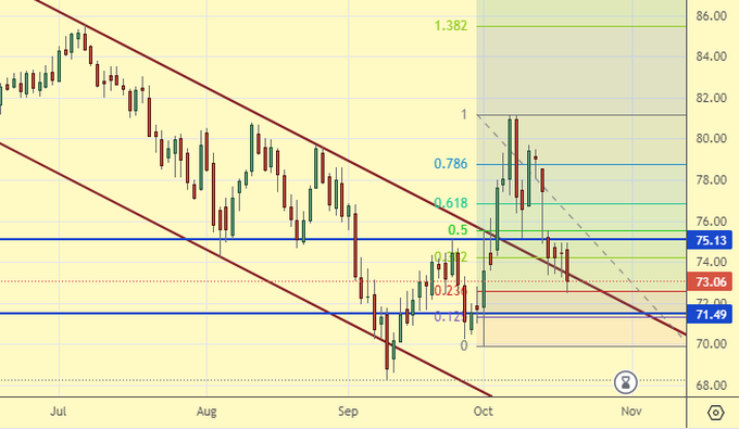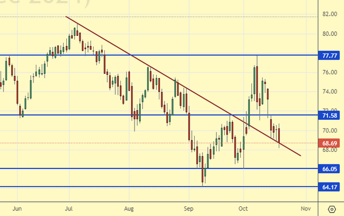 Сценарий роста: перешли на декабрьский фьючерс, дата экспирации 20 ноября. Как и по Brent мы ждали откат. А вот и он. Глубокий, хороший. Купим.