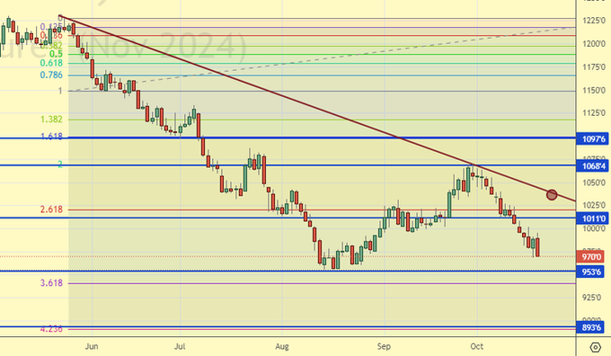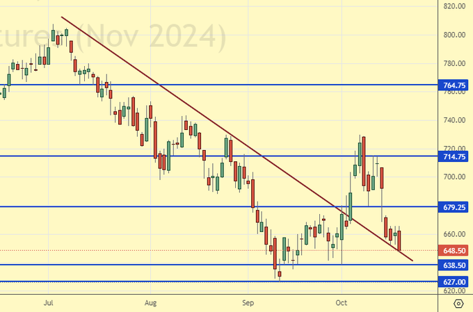 Сценарий роста: рассматриваем ноябрьский фьючерс, дата экспирации 14 ноября. Пока о покупках не думаем. Сои много.