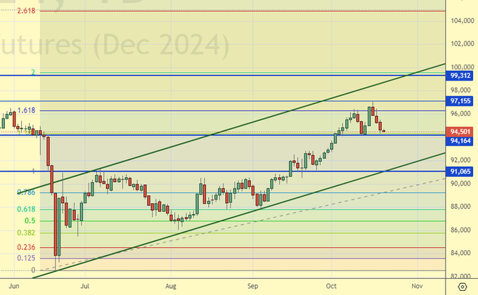 Сценарий роста: рассматриваем декабрьский фьючерс, дата экспирации 19 декабря. При откате к 90000 имеет смысл снова купить.
