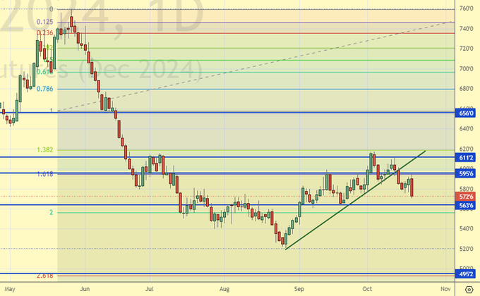 Сценарий роста: рассматриваем декабрьский фьючерс, дата экспирации 31 октября. Технически покупки обоснованы в данном месте. Да, мы купим. И будем ждать, когда Израиль начнет бомбить Иран. Ничего личного, просто бизнес.