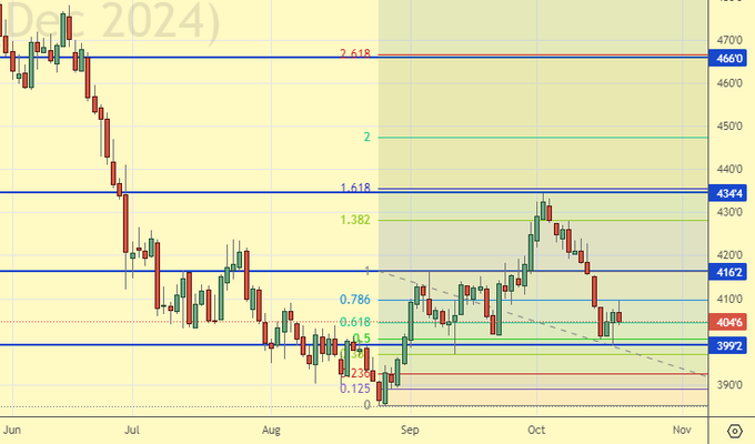 Сценарий роста: рассматриваем декабрьский фьючерс, дата экспирации 13 декабря. Риск падения к 500.0 вырос. Зерна полно и стрессов на этом рынке скорее всего не будет.
