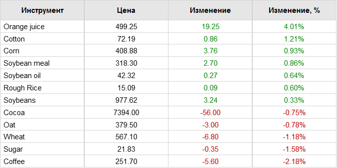В понедельник соевые бобы торговались с повышением на 5-10 центов. Фьючерсы на соевую муку подорожали на $3,10 за тонну. Контракты на соевое масло выросли на 38 пунктов за сессию. Вчера утром USDA сообщило о частных экспортных продажах 116 000 тонн соевых бобов в неизвестном направлении. Еженедельные данные по экспорту показали, что за неделю, завершившуюся 17 октября, было отгружено 2,43 млн тонн соевых бобов. Это на 7,4% меньше, чем в прошлом году, но на 27,6% больше, чем на предыдущей неделе. Из этого количества 1,687 млн тонн отправились в Китай, 159 130 тонн — в Мексику и 122 783 тонны — в Египет. В целом за год поставки составили 7,896 млн тонн, что на 2,9% меньше, чем на той же неделе прошлого года.