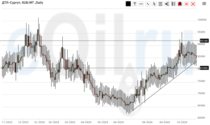 Сценарий роста: рассматриваем ноябрьский фьючерс, дата экспирации 12 ноября. Рынок нефти вытащит рынок топлива вверх. Держим лонг.