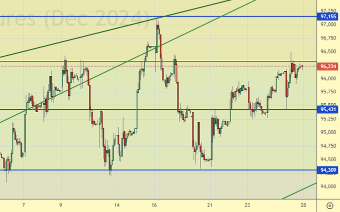 Продажа: нет. Кто в позиции от 96400 и 96114, держите стоп на 96800. Цель: 91100.