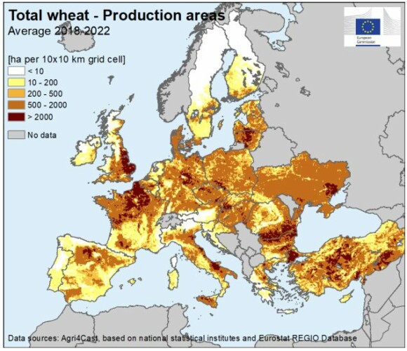 Чрезмерно влажные условия — часто связанные с проливными дождями — наблюдались и во многих других частях центральной и западной Европы. Дожди не только привели к задержке сбора летних культур, но и вызвали опасения по поводу качества зерна, а также затруднили посевную кампанию озимых зерновых.