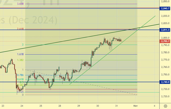 Можно, конечно, нарезать кусочки по тренду, если получается, но глобально было бы интересно увидеть рынок на 2838. Там продать, опуститься к 2550, там купить и оказаться на 3000. Вот это и есть путь к богатству. От 2811 возможен откат.