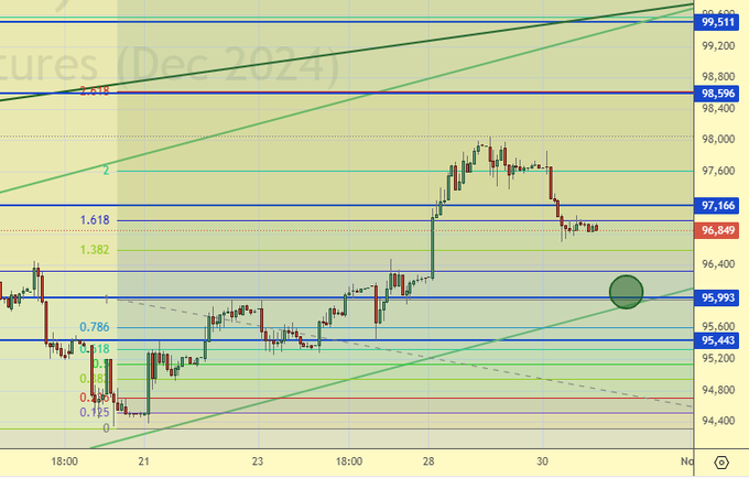 Покупка: при подходе к 96000. Стоп: 95400. Цель: 99400.