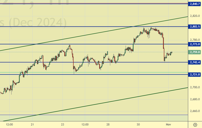 Внезапно… А как же 2811 хотя бы… Возможно мы вернемся к росту после объявления решения ФРС 7-го числа. Не исключено, что и сегодня будут движения, так как мы ждем данные по рынку труда в США. Если они окажутся сильными, то тогда золото может продолжить падение.