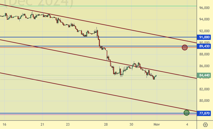 У любой мрачной истории есть свои оттенки, так вот… все 50 оттенков серого мы уже прошли. Начинаются оттенки черного. Если не будет отката вверх к 89500, это будет означать, что рынок просто раздавлен перспективами дальнейшего роста ставки. И отпустит его, видимо, не скоро.