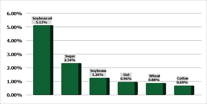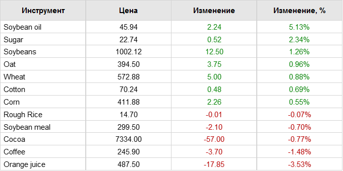 Соевые бобы торговались с повышением от 4 до 6 центов в четверг утром. Сессия среды завершилась ростом контрактов на 7 ½ — 12 ¼ центов. Первый день уведомлений по ноябрьским фьючерсам на сою приходится на четверг, всего было объявлено 97 поставок. Предварительные данные по открытому интересу за среду показали чистые новые покупки по большинству контрактов. Среднее закрытие ноябрьских фьючерсов на сою в октябре составило $10,04. Это на 1,51 доллара ниже февральской базовой страховой цены. Фьючерсы на соевую муку были разнонаправленными, контракты колебались в пределах 20 центов от неизменного уровня. Фьючерсы на соевое масло выросли за день на 83-101 пункт.