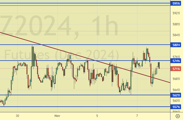 Пшеница (декабрьский контракт, CME Group, исполнение 13.12.2024)