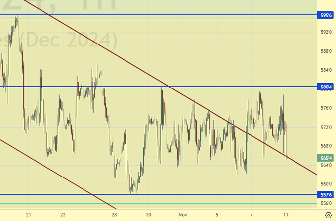 Пшеница (декабрьский контракт, CME Group, исполнение 13.12.2024)