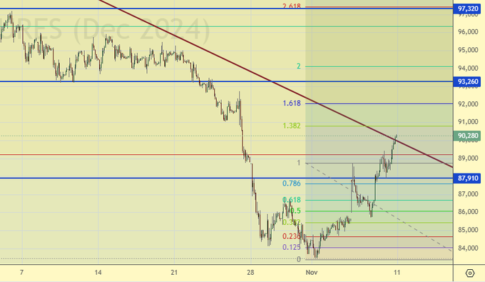 Продажа: нет. Кто в позиции от 88990 и 90000, перенесите стоп на 91100. Цель: 80000 (70000).