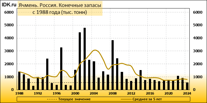 Конечные запасы: составят 562 тысячи тонн. Оценка с последнего отчета снизилась на -15.11 процента.