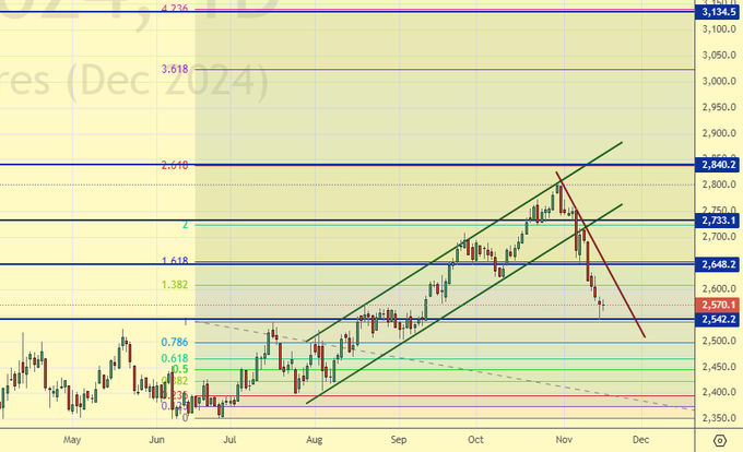 Покупка: нет. Кто в позиции от 2550, перенесите стоп на 2530. Цель: 2840 (3100).