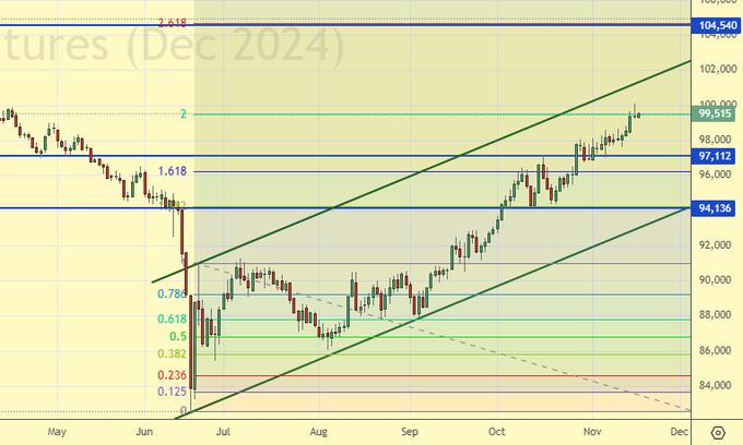 Покупка: при подходе к 96000. Стоп: 95000. Цель: 104000. Кто в позиции от 96234, перенесите стоп на 98800. Цель: 150000, 200000?! (ориентиры такие пока)