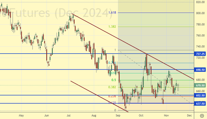Сценарий роста: рассматриваем декабрьский фьючерс, дата экспирации 13 декабря. Возможно, что мы купим в конце следующей недели т 500.0. На текущих ценовых уровнях ничего не делаем.