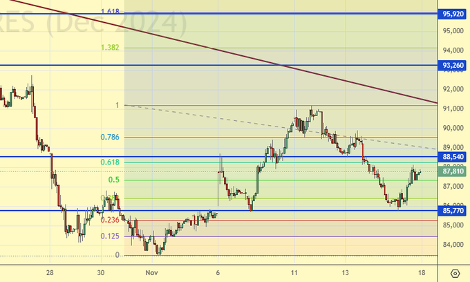 Покупка: нет. Кто в позиции от 86360, перенесите стоп на 86100. Цель: 97160.