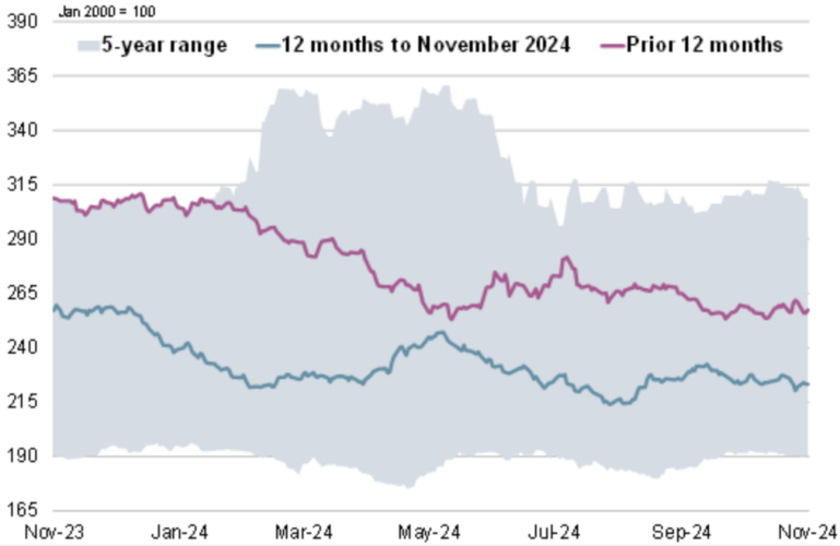 Мировое производство риса в 2024/25 гг. увеличится на 4 млн т м/м, до 535 млн т (+2%), что в основном связано с повышением прогноза производства в Индии, а общий рост предложения отразится в повышении ожиданий потребления и совокупных запасов на конец сезона — последние увеличатся на 1 млн т м/м. Мировой импортный спрос в 2025 году (январь/декабрь) прогнозируется без изменений по сравнению с предыдущим прогнозом и составит 56 млн т (+3%).