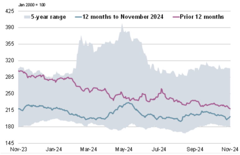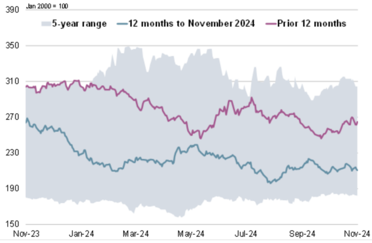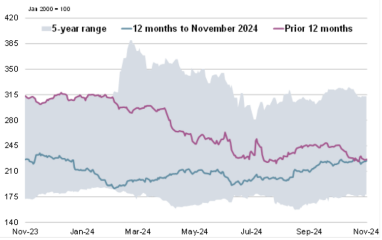 Показатели IGC GOI были стабильными по сравнению с октябрьским ВДМ. Активность была двусторонней, события на внешних рынках часто влияли на направление движения цен.