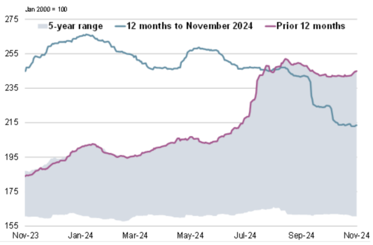 На фоне усиления сезонного давления в Южном полушарии и улучшения прогнозов погоды в ряде ключевых поставщиков, включая США, субиндекс пшеницы IGC GOI снизился на 4% м/м.