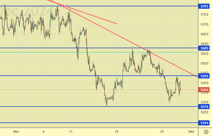 У декабрьского контракта последние ликвидные дни. Не исключено, что ближе к Новому году мы увидим какие-либо движения на мартовском фьючерсе. Сейчас же кукловоды дотянут до экспирации декабрьский контракт, оставив его на текущих уровнях и заберут профит от продажи опционов.