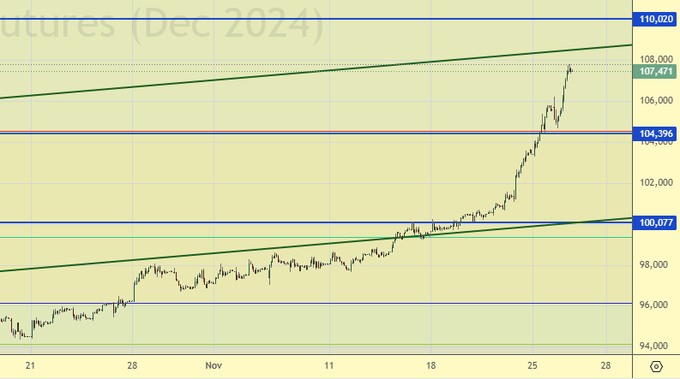 Стало только хуже. Панические настроения по паре сохраняются. Скорее всего мы идем на 110000 (112800, 118000). Будет ли коррекция после достижения данного уровня сказать сложно. Любые откаты рекомендуем использовать для покупок. Действительность с бюджетом, резервами и платежами может быть намного хуже публичных деклараций.