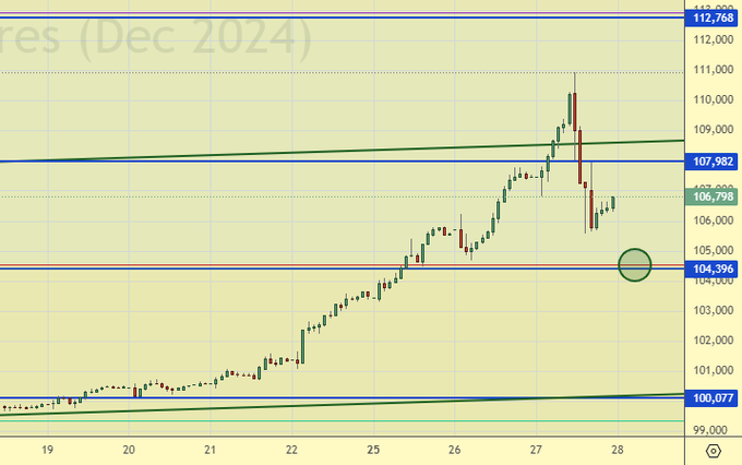 Покупка: при откате к 104500. Стоп: 103500. Цель: 118000.