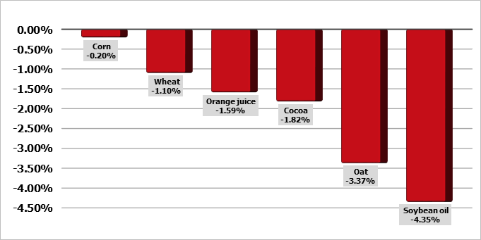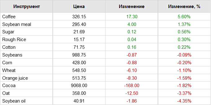 Фьючерсы на пшеницу на SRW в Чикаго снижались в среду на 6-9 центов по большинству контрактов. Контракты KC HRW снижались на 11-13 центов по итогам сессии, причем декабрьские падали на 24 цента. Яровая пшеница MPLS снижалась на 10 — 15 центов. Правительство и рынки будут закрыты в четверг в связи с празднованием Дня благодарения, а в пятницу утром будет открыта укороченная сессия, которая завершится в 12:05 CST. Перед утренним отчетом о продажах на экспорт в пятницу торговля ожидает 200 000 и 600 000 тонн пшеницы на неделе до 21 ноября, согласно опросу Reuters. На тендере Алжира во вторник закупки составили от 140 000 до 150 000 тонн.
