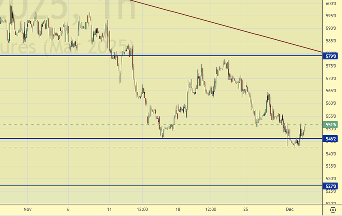 Продажа: нет. Кто в позиции от 560.0 (с учетом перехода на новый контракт), держите стоп на 562.0. Цель: 527.0 (500.0).