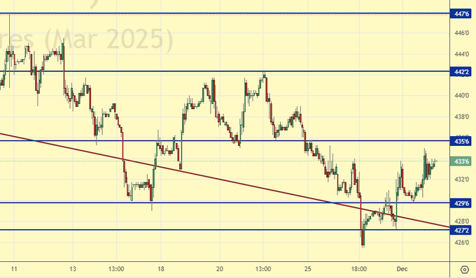 Продажа: нет. Кто в позиции от 435.0 (с учетом перехода на новый контракт), держите стоп на 439.0. Цель: 370.0.