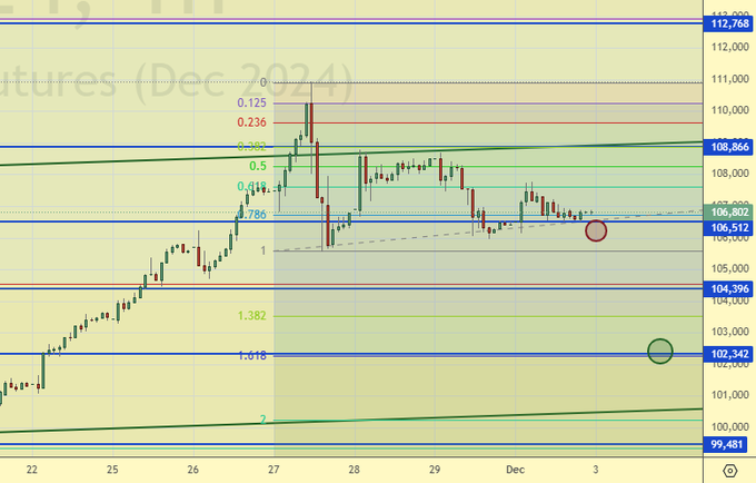 Продажа: при подходе к 110000. Стоп: 111000. Цель: 102500. При падении ниже 106300. Стоп: 107000. Цель: 102500.