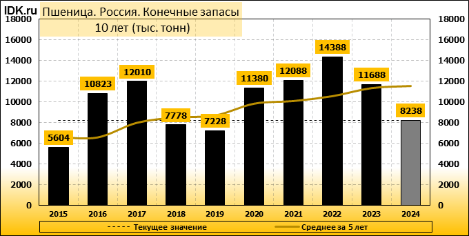 Конечные запасы: составят 8238 тысяч тонн. Оценка с последнего отчета подросла на 13.82 процента.