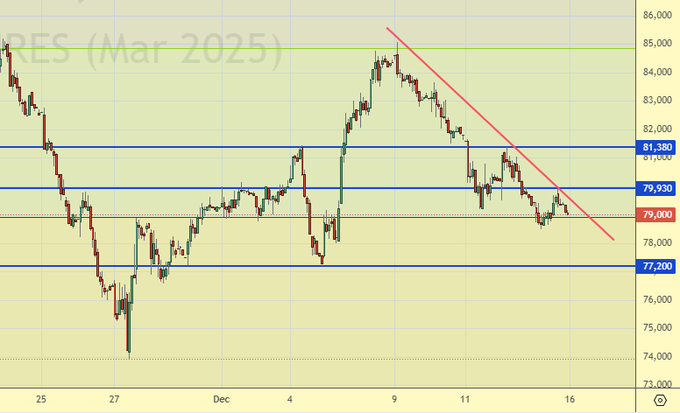 Продажа: нет. Кто в позиции от 80400 (с учетом перехода на новый контракт), перенесите стоп на 80100. Цель: 70000.