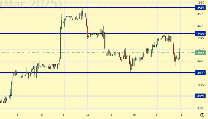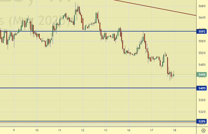 Вчера отрисовали важную для продавцов ветку вниз. Продолжаем мечтать о 430.0, вот это будет шоу с воплями фермеров по всему миру.