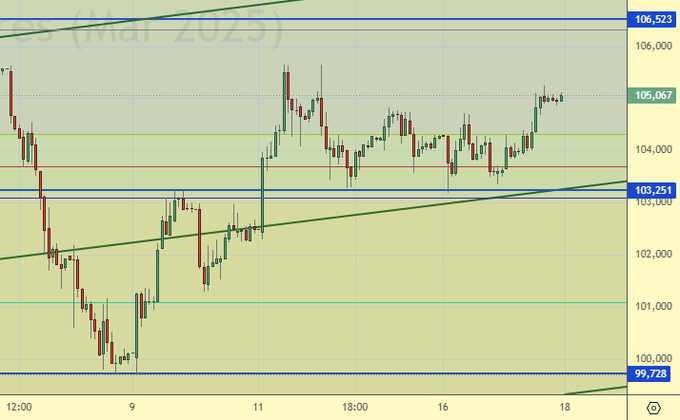 Продажа: при подходе к 106300. Стоп: 107300. Цель: 98000. Кто в позиции от 104278, держите стоп на 105600. Цель: 98000.