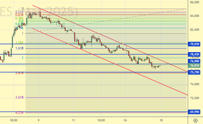Продажа: нет. Кто в позиции от 80400 (с учетом перехода на новый контракт), перенесите стоп на 78600. Цель: 70000.