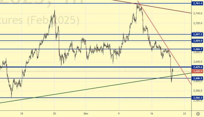 Продажа: сейчас (2620), также при подходе к 2645. Стоп: 2660. Считайте риски!