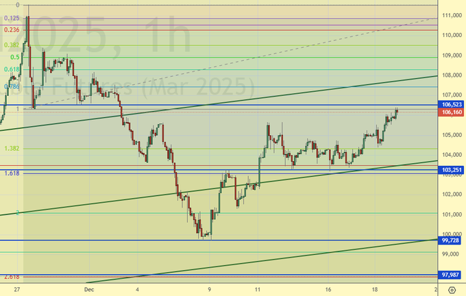 Продажа: нет. Кто в позиции от 106300, держите стоп на 107300. Цель: 98000.