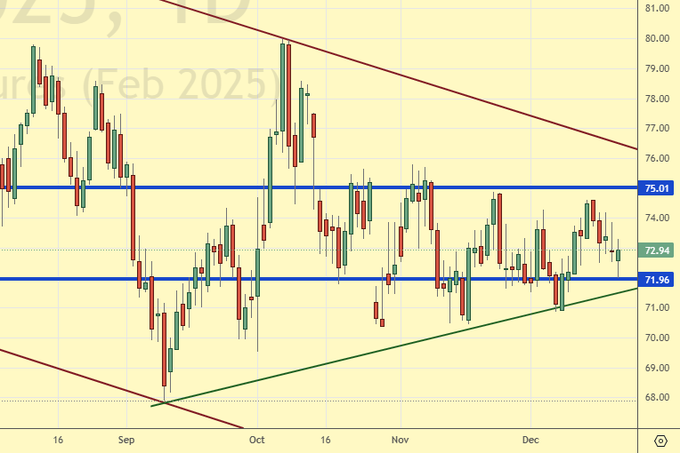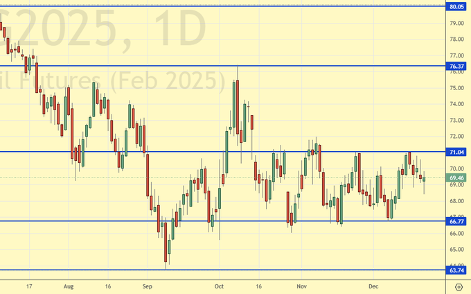 Сценарий роста: перешли на февральский фьючерс, дата экспирации 21 января. В случае роста выше 73.00 будем думать о покупках.