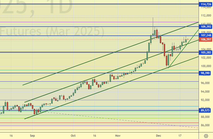 Продажа: нет. Кто в позиции от 106300, перенесите стоп на 107770. Цель: 98000?!!!