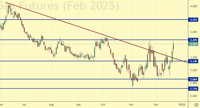 Сценарий роста: рассматриваем январский фьючерс, дата экспирации 10 января. Глядя на ретест пробитого падающего канала хочется купить, что мы и сделаем.