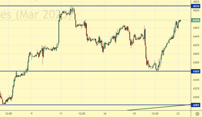 Кукуруза (мартовский контракт, CME Group, исполнение 14.03.2025)