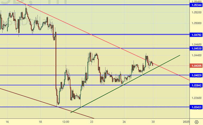 Продажа: нет. Кто в позиции от 1.0440, держите стоп на 1.0460. Цель: 1.0030.