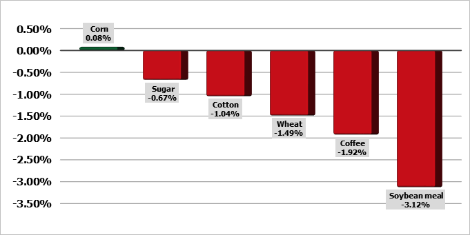 Фьючерсы на кукурузу в начале торгов среды потеряли от 1 до 2 центов. Рынок кукурузы завершил сессию с контрактами, демонстрирующими рост на первых месяцах после того, как большую часть сессии провел в минусе. Предварительный открытый интерес вырос на 11911 контрактов по сравнению со вторником. Во вторник были опубликованы данные по ноябрьскому экспорту, согласно которым за месяц было поставлено 4,704 млн тонн кукурузы, что является 6-летним максимумом. Это также на 16,22% выше, чем в прошлом месяце, а общий объем экспорта за первый квартал составил 513 млн. бушелей. Три отдельных южнокорейских импортера закупили за ночь в общей сложности 337000 тонн кукурузы, хотя происхождение еще не раскрыто.
