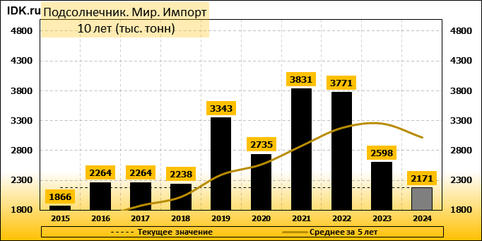 Импорт: составит 2171 тысячу тонн. Значение по прошествии месяца не изменилось.