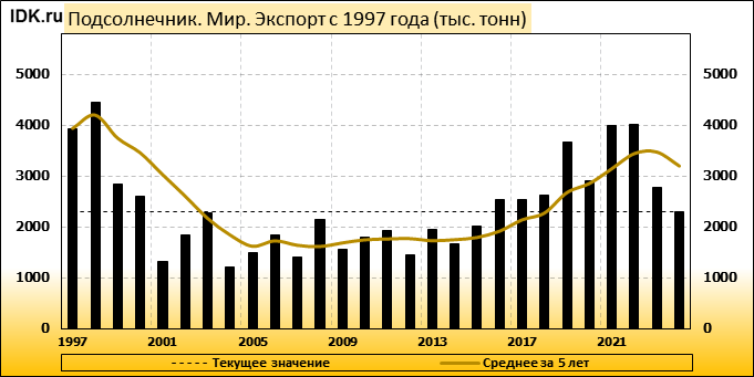 Экспорт: оценивается в 2295 тысяч тонн. За месяц показатель упал на -0.13 процента.